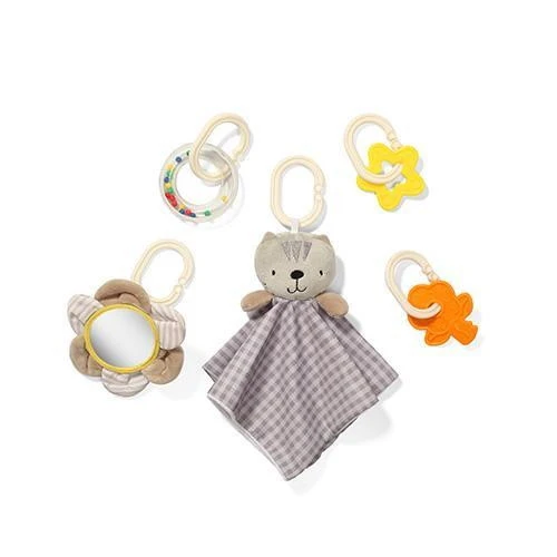 Aan de speelbogen hangen 5 verschillende speeltjes waar je kleine uren mee kan spelen! Als je kindje wat ouder is kan hij of zij op de buik spelen hierdoor worden de rug-, schouder- en nekspieren versterkt. Het speelkleed is gemaakt van polyester, heeft de afmetingen Ø 90 x 52 cm en is geschikt voor kindjes vanaf 0 maanden.