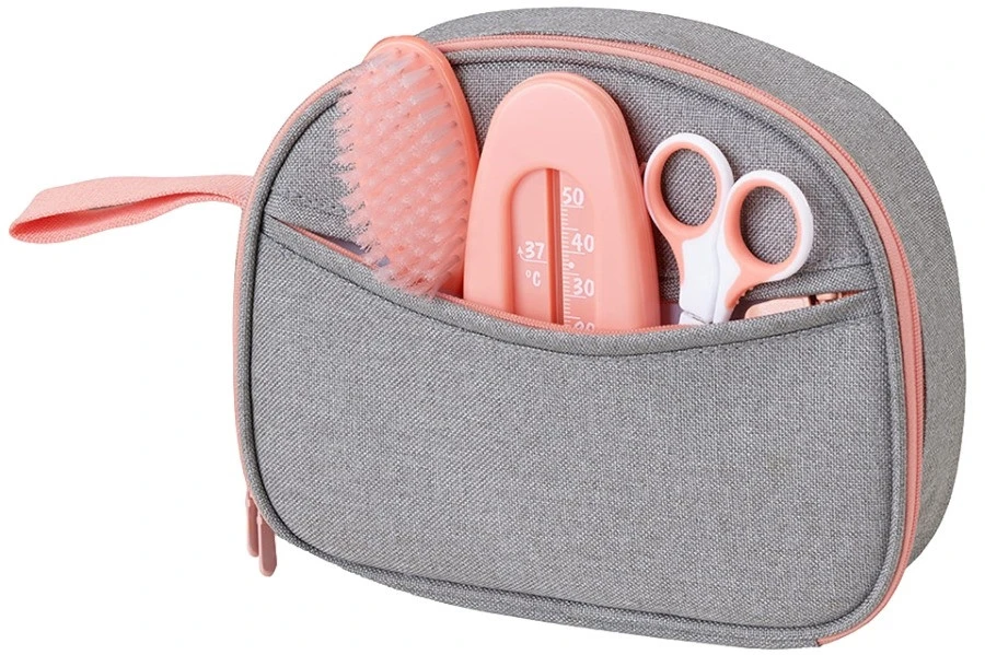 Digitale thermometer met flexibele tip, een neuspompje, een schaartje, nagelknipper, nagelvijl, badthermometer, zachte borstel, bijtring en een vingertandenborstel - Afmetingen: