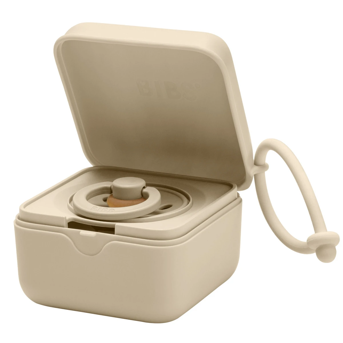Je draagt het doosje gemakkelijk overal naartoe dankzij de handige siliconen draagband. Het doosje is geschikt voor alle spenen van het merk BIBS.