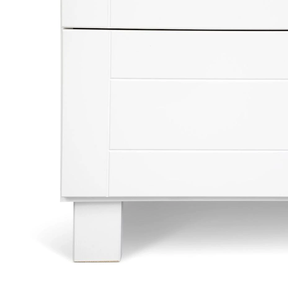 De commode Lieke is een stevige en praktische commode met een strakke witte kleur. De drie handige lades zorgen ervoor dat je altijd alle babyverzorgingsspulletjes makkelijk en dichtbij in de buurt hebt. Het commodeblad is afneembaar zodat je de commode later ook als ladekast kunt gebruiken in de kinderkamer.