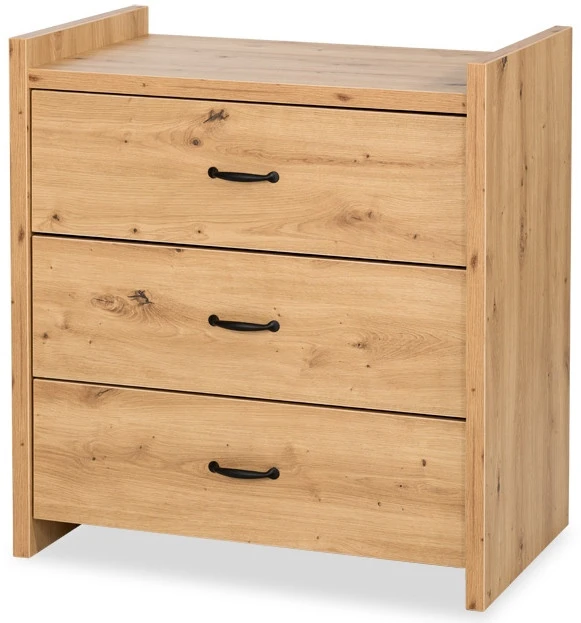 Commode Sander heeft een stoere houtlook en staat mooi in iedere babykamer! Deze commode heeft 3 grote lades waarin je alle verzorgingsspulletjes van je kleintje gemakkelijk kwijt kan!