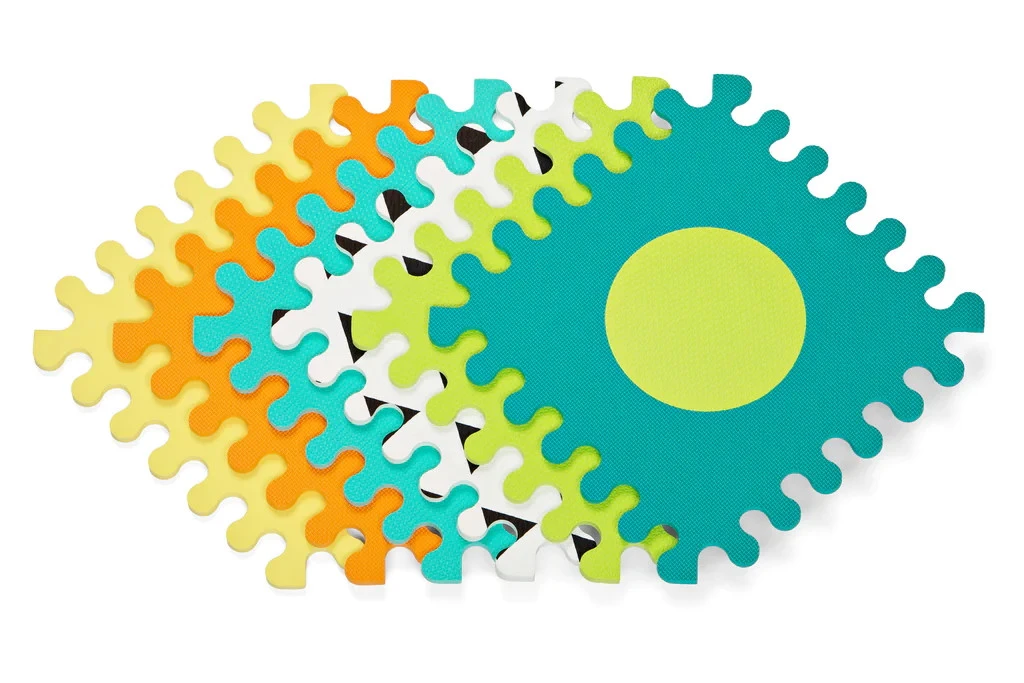 Met deze vrolijk gekleurde schuimrubberen puzzelmat wordt je kleintje tijdens het spelen automatisch verschillende vormen aangeleerd. Met de puzzelstukken kan een mat worden gevormd, ze kunnen in een lange rij worden gelegd en er kan een leuke kubus van gemaakt worden. De vormen kunnen ook los gebruikt worden nadat ze uit de puzzelstukken zijn gedrukt.