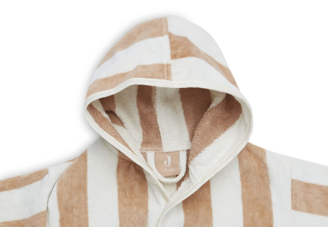 Deze super zachte badjas met capuchon van Jollein zorgt ervoor dat je kindje heerlijk warm zal blijven na het badderen! Hij heeft een handig koordje om hem dicht te strikken en een leuk strependesign, waardoor jouw kleintje er ook nog eens super schattig uit zal zien in dit badjasje!