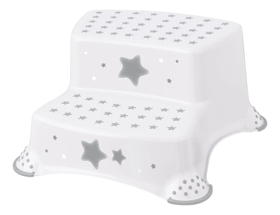Het opstapje heeft een mooie witte kleur en is voorzien van leuke print met sterren. De nieuwe technologie van overprint (IML) voorkomt dat de afbeelding vervaagt of loslaat.