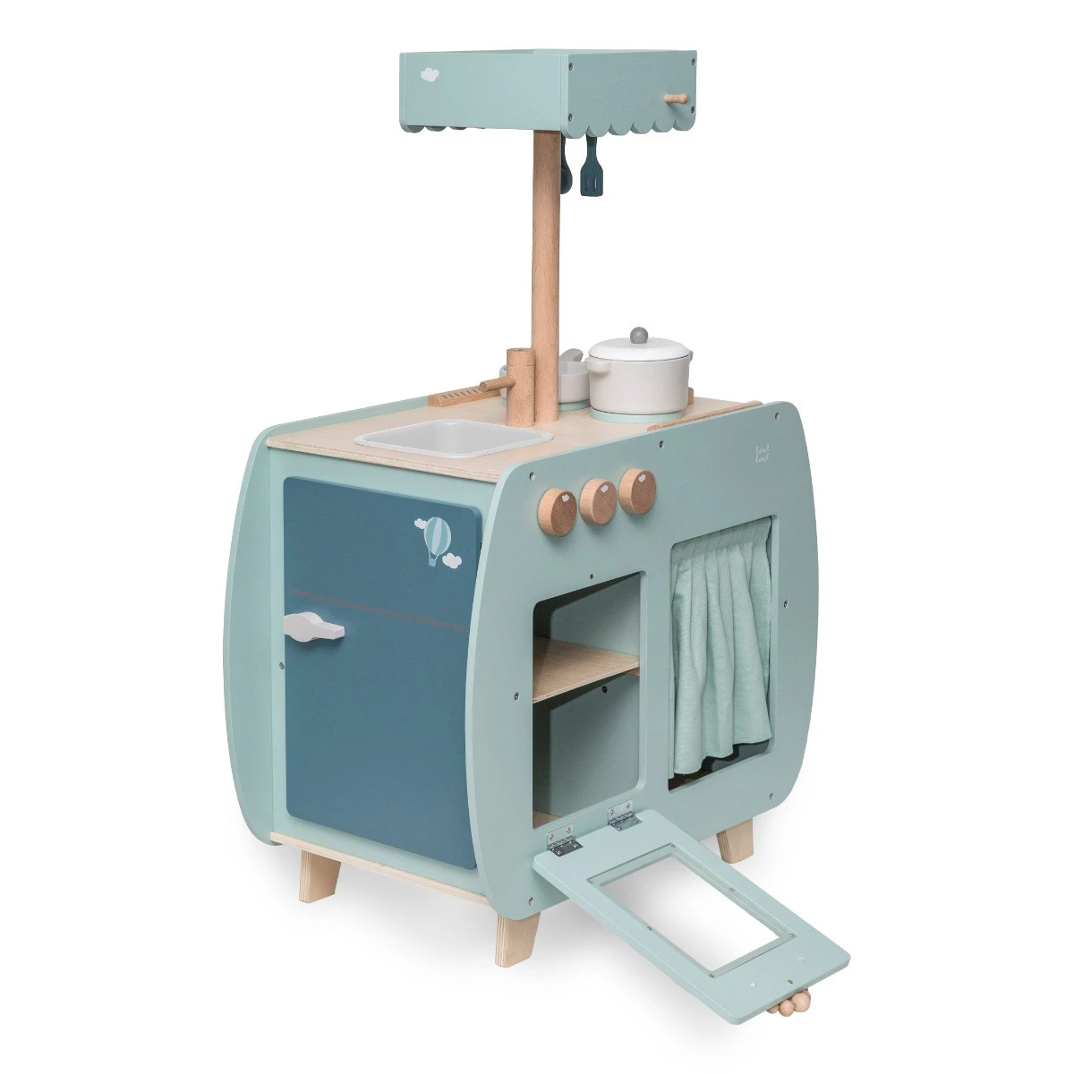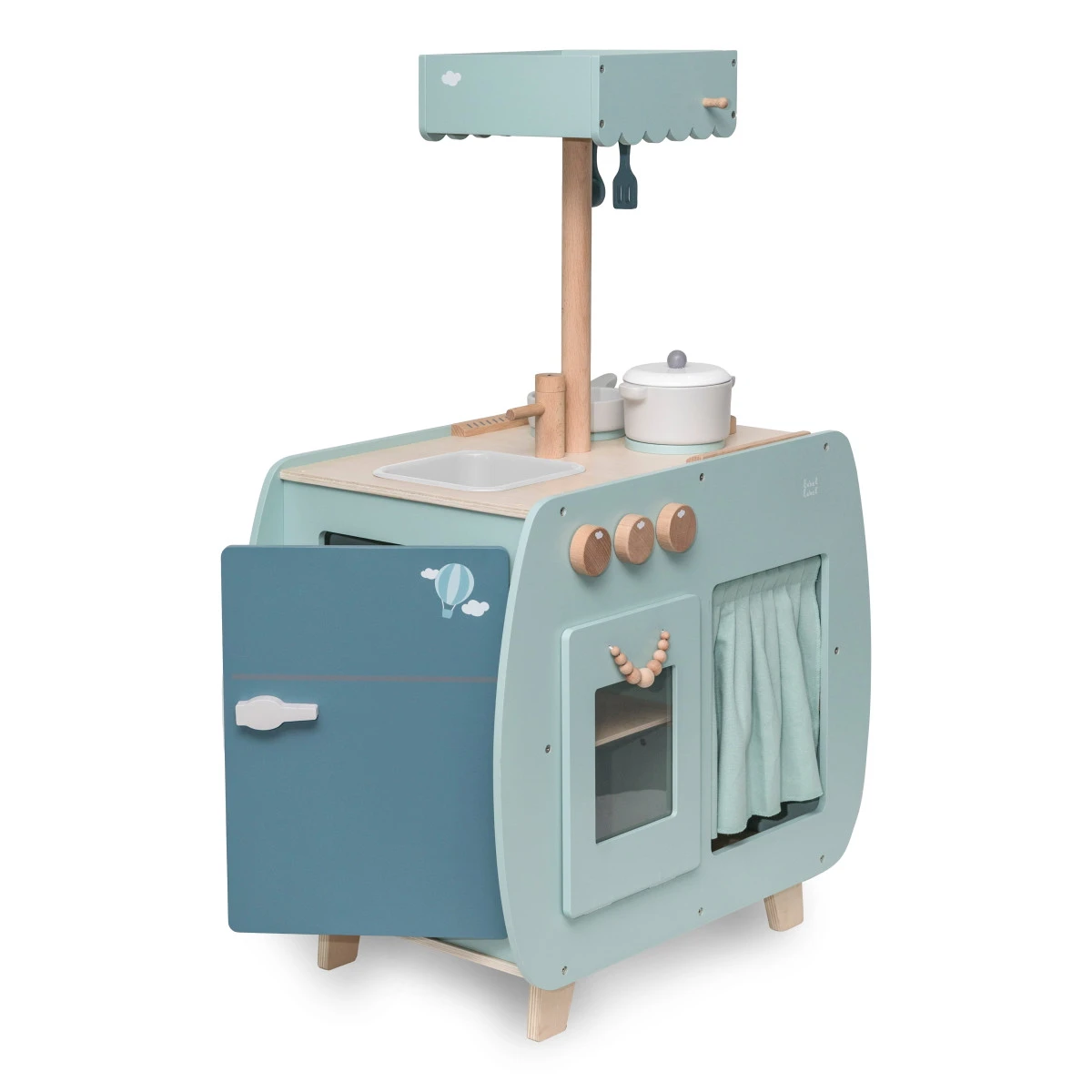 Doordat het kookeiland is voorzien van verschillende schattige details zoals de knoppen van het gasfornuis en de leuke handvaten, lijkt het net een echte grote mensen keuken. Daarnaast kunnen ook alle deurtjes geopend worden. Omdat je kindje rond om de keuken kan lopen, kan hij of zij ook samen met een vriendje of vriendinnetje de sterren van de hemel koken. De keuken heeft aan alle kanten wat te beleven en heeft de afmetingen 60 x 34,5 x 51/89 cm. De totale hoogte van de keuken is 89 cm, de hoogte van het werkblad is 51 cm hoog. Het bistro keukentje is geschikt voor kinderen vanaf 3 jaar.