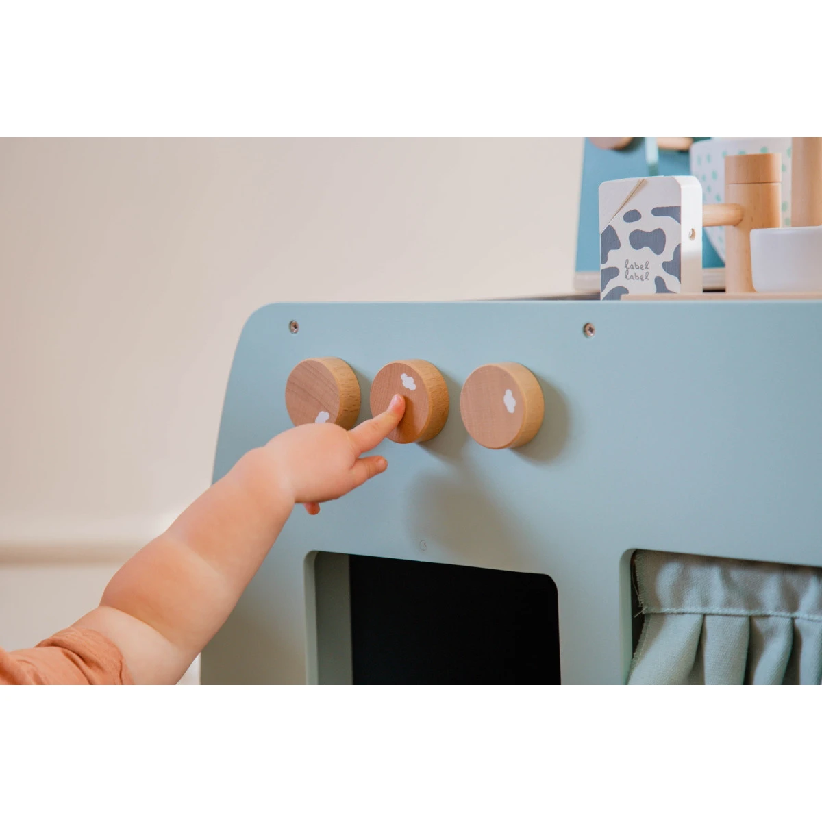 Vind jouw kleintje het ook zo geweldig om mee te kijken of mee te helpen in de keuken als jij aan het koken bent? Dan is deze Label Label Houten Bistro Keuken perfect geschikt voor jouw kindje. Het keukentje is van alle gemakken voorzien om de lekkerste Michelin ster waardige gerechten te koken.
