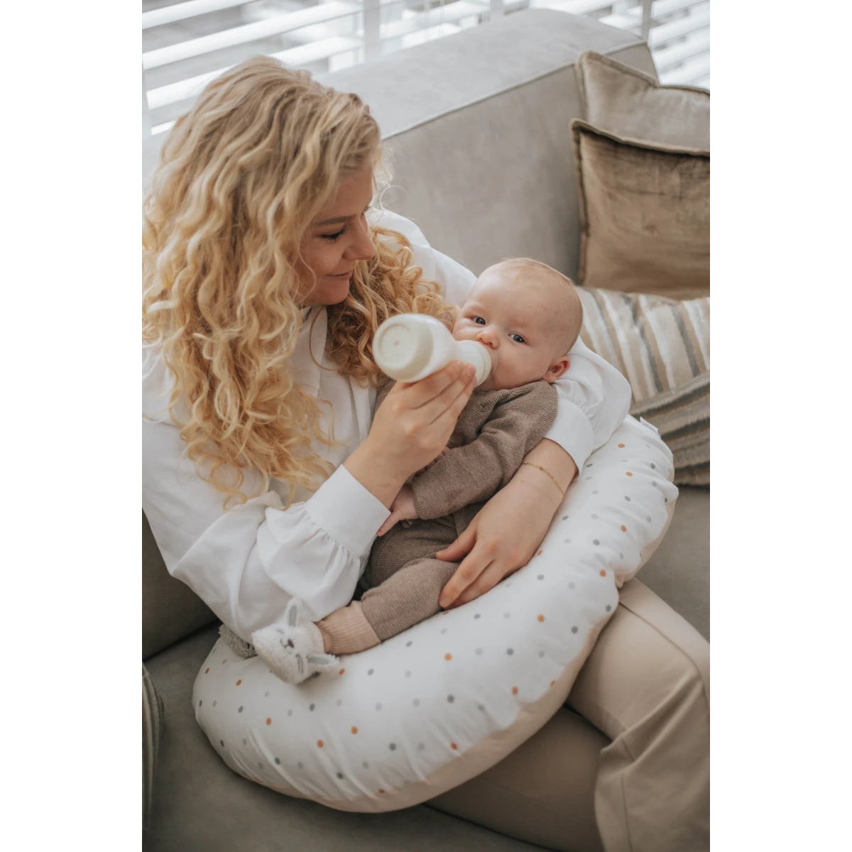 Dit voedingskussen van MamaLoes heeft een ergonomische vorm en erg buigzaam. Dit kussen maakt het makkelijker voor moeders om het kindje in verschillende houdingen borstvoeding of flesvoeding te geven.