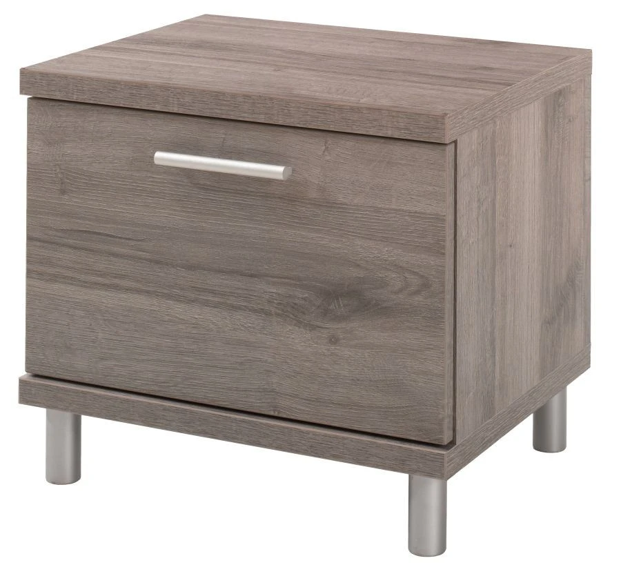 Nachtkastje Naomi is niet alleen praktisch maar staat ook mooi in iedere babykamer! Het nachtkastje is volledig afgewerkt met een grijze houtlook. De zilverkleurige poten zorgen ervoor dat het kastje een stukje van de grond staat. De zilverkleurige, aluminium handgreep zorgt voor een strakke en luxe uitstraling.