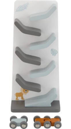 Met deze houten zigzag autobaan van Tryco stimuleer je de motoriek van je kleine. Zet de autootjes één voor één bovenin de autobaan en laat ze racen naar beneden. Welke is het snelst? Er worden 2 autootjes meegeleverd (een dubbele), zo kan je kleintje in de gaten houden welke als eerst beneden is.