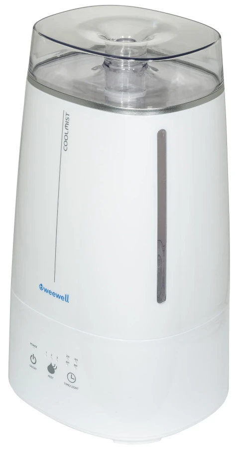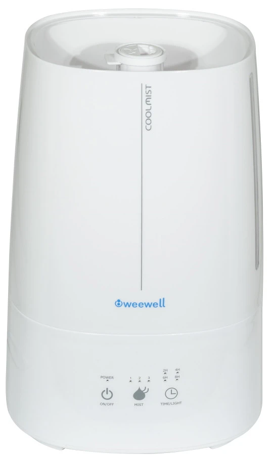 De Weewell Ultrasonik Luchtbevochtiger is een manuele luchtbevochtiger met een minimalistisch, stijlvol en modern design die je gemakkelijk kan bedienen met het touch bedieningspaneel. Hiermee kun je de timer instellen (2, 4, 6 of 8 uur) en het multicolor LED licht aan- of uitzetten. Daarnaast kun je hiermee drie verschillende sterktes instellen. Je vult de luchtbevochtiger eenvoudig aan de bovenkant. Dankzij de watertank van 3,5 liter kan de luchtbevochtiger lekker lang gebruikt worden voordat je hem weer bij moet vullen.